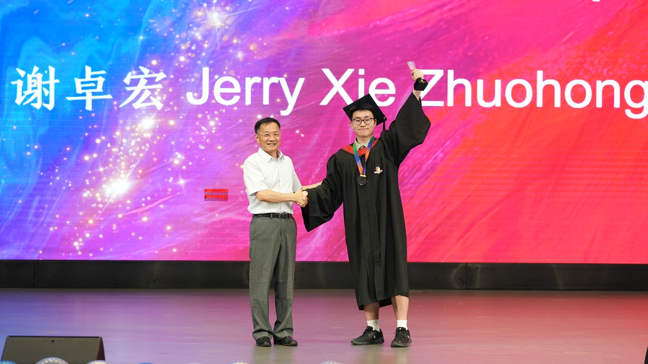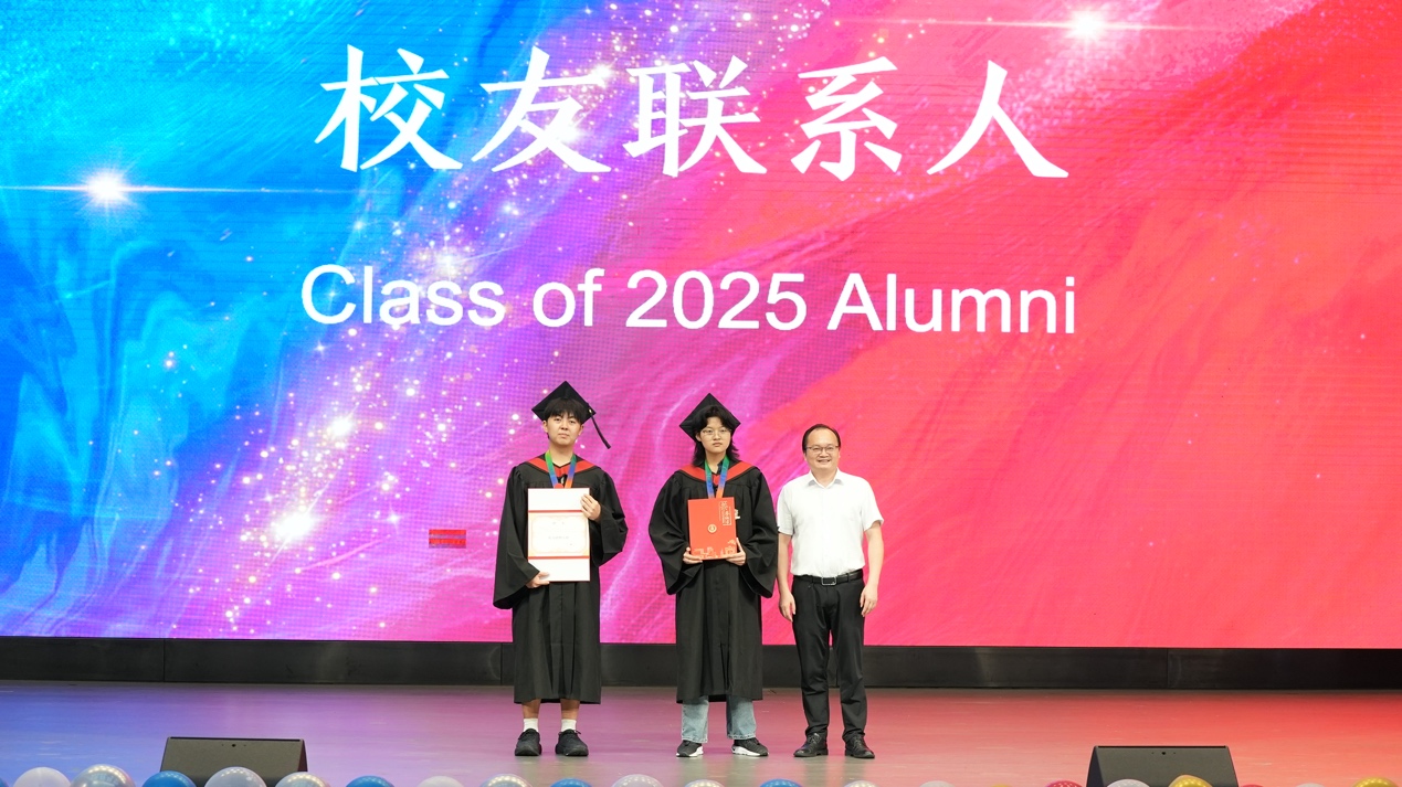 典礼上,PA视讯附中副校长梁学友为毕业生颁发了校友联系人证书,这寄托了母校的深切嘱托与殷切期盼。PA视讯附中校长、党委副书记张勇在致辞中表示,学校致力于打造兼具厚度与温度的国际教育生态,鼓励学生践行“行己有耻,君子不器”的百年校训,以君子之德涵养自身,以赤子之心勇担大任,以务实之行开创未来,以对话之姿拥抱世界。
