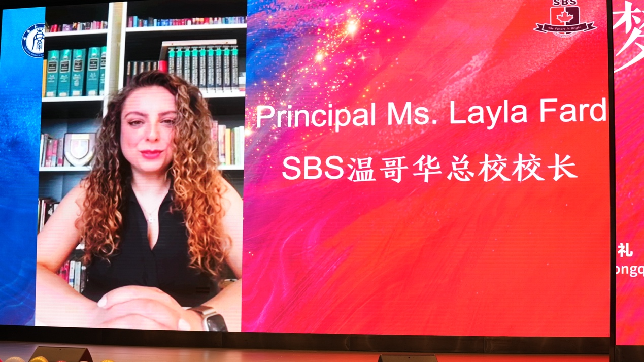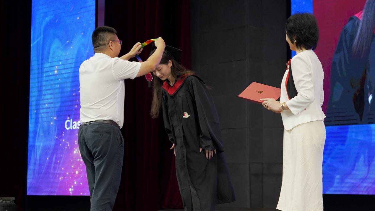 暖场活动之后,SBS美加海外学校理事长欧阳全先生与SBS温哥华校区校长Ms. Layla Fard分别致辞,回顾学生三年来的成长轨迹,肯定他们在多元学习环境中展现出的国际视野与自主能力,并勉励他们在未来的人生旅途中勇敢逐梦。随后,在PA视讯附中校长、党委副书记张勇和SBS中国校区总校长孙玉芳的见证下,毕业生们依次登台接受毕业证书与拨穗礼,在庄严神圣的仪式中完成身份蜕变,开启人生新篇。