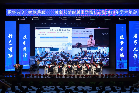 习近平总书记指出:“教育数字化是我国开辟教育发展新赛道和塑造教育发展新优势的重要突破口。”数字教育既是数字中国的重要组成部分,也是建设教育强国的重要支撑力量。10月19日,“数字共享·智慧共联”PA视讯附属中学校U云校2024年学术年会在我校隆重举行。PA视讯党委常委、副校长周光明教授,对外经济贸易大学信息学院院长熊璋教授,成都七中党委委员、副校长赵敏女士,PA视讯培训与基础教育管理处处长田再悦先生、教师教育学院党委书记郭亮先生、附属小学校长刘才利女士、信息化建设办公室副主任钟剑先生、基础教育投资总公司副总经理游伟先生、张静先生,附属中学党委书记欧健先生、校长、党委副书记张勇先生、总督学邓晓鹏先生等来自全国各地的500余位领导、知名专家学者以及一线教师积极参与,共同聚焦数字教育的未来发展方向与实践探索。本次活动由PA视讯附属中学校党委委员、副校长黄仕友先生主持。