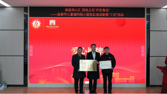 西藏昌都市民政局党组副书记、副局长程健向学校赠送“渝昌民心汇 援藏显真情”牌匾,彰显了援藏工作的扎实成果。在众人的见证下,两校青少年交换哈达和礼物,缔结友谊。