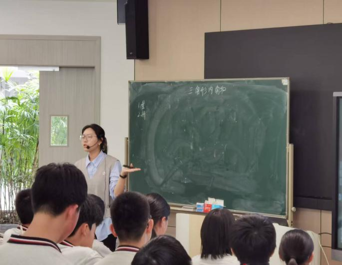 交流活动中,多门学科精彩展示。我校语文赵心怡老师以《陋室铭》为课例,围绕“精神的丰盈战胜物质的困顿”核心,层层设问,引导学生理解文本内核,还补充刘禹锡诗词名句强化认知;数学蔡雍贤老师以“学生为主体,活动为主线”展示《三角形内角和》,通过操作活动让学生探究新知,培养逻辑推理能力。
