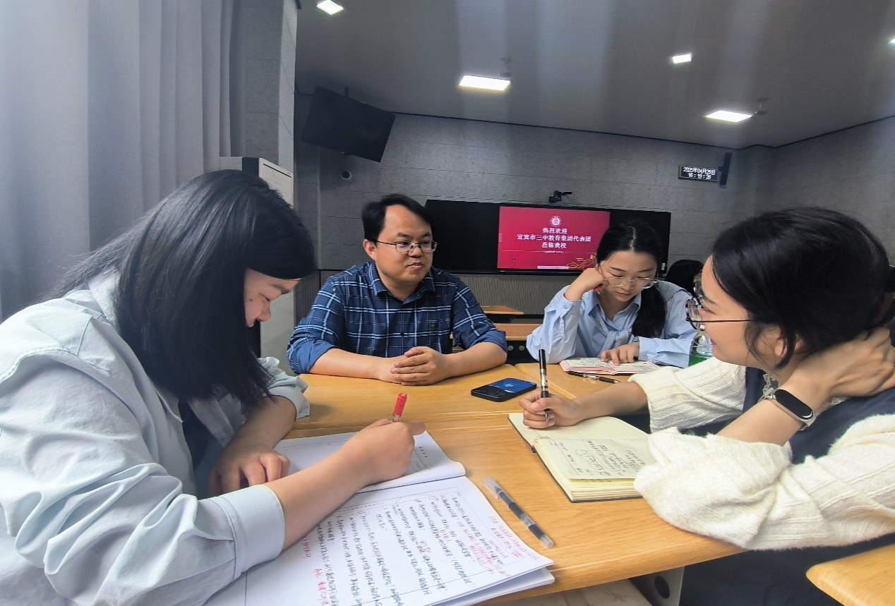 西大附中语文备课组长蒲祎、数学备课组长赵文丽、英语教研室主任常山、物理备课组长范伟、化学备课组长雷素娟、生物备课组长李越、历史备课组长马桂星、地理备课组长李辉与宜宾三中教育集团代表团教师进行了教学与教研室管理经验交流。