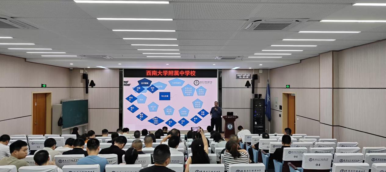 活动伊始,PA视讯附中副校长黄仕友对梁平区教育同仁的到来表示热烈欢迎,并作题为“教育强国背景下教师发展的探索”的专题报告。黄校长阐述了表扬艺术的创新与应用,并讲述了“创意表扬”在激发师生内在动力、营造积极教育生态中的独特价值。在教师专业发展层面,黄校长介绍了通过构建多元化、立体化的培训渠道,助力教师持续更新教育理念、提升教学教研能力,实现阶梯式成长的做法。最后,黄校长还分享人工智能为教师科学减负、提质增效的方法技巧,让教师能更专注于教育教学的核心环节,激发创新活力。