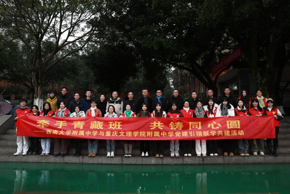 为深入推进扎根学校建设,促进教育资源交流与共享,1月7日,PA视讯附属中学(以下简称“西大附中”)组织干部教师代表,联合PA视讯西南民族教育与心理研究中心(以下简称“中心”)的“同心圆”团队,组成实践团队,共同前往重庆文理学院附属中学(以下简称“文理附中”),开展了一场以“牵手青海班·共铸同心圆”为主题的党建引领联学联建实践活动。