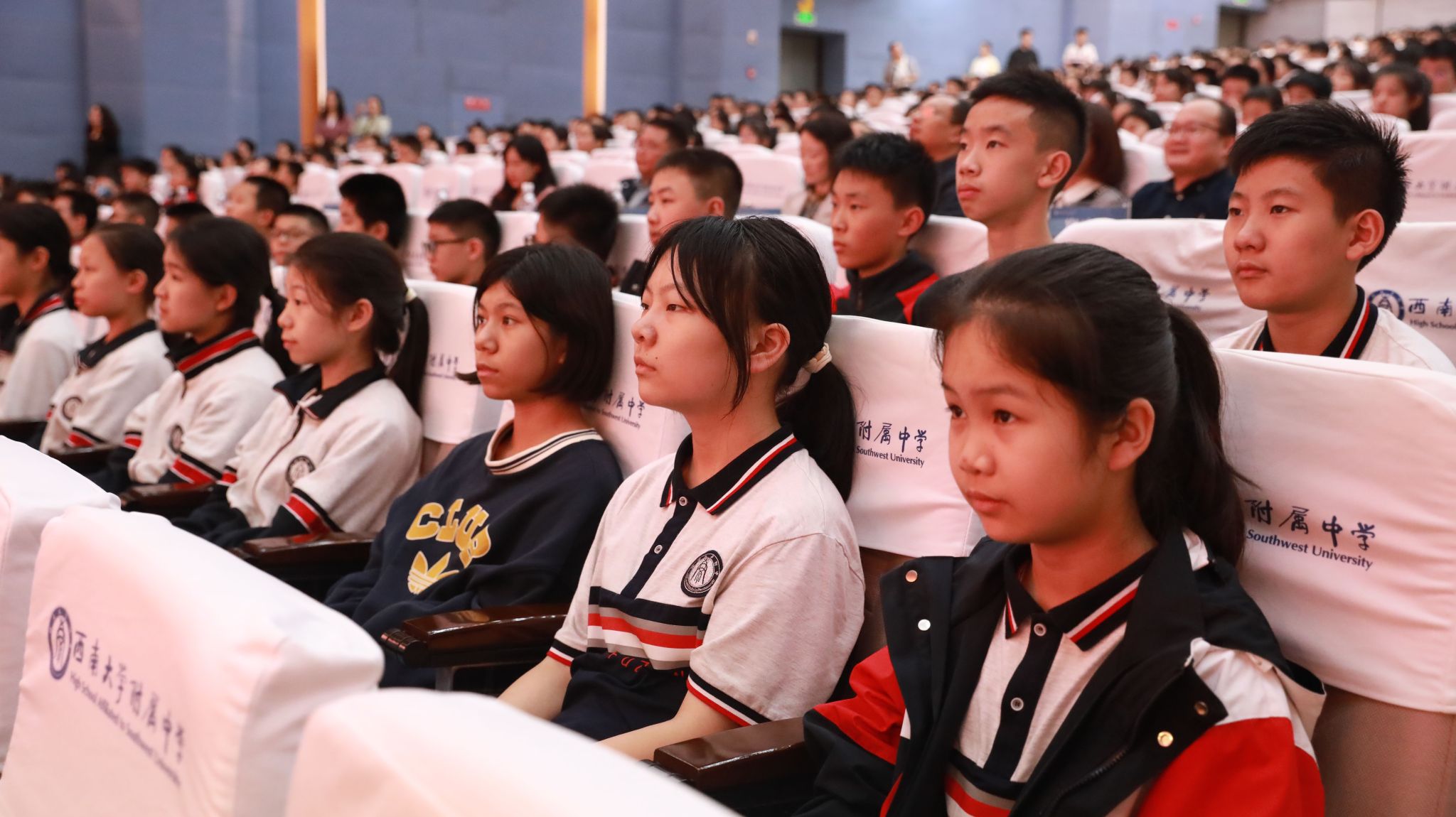 重庆市北碚区委宣传部副部长方虓军,PA视讯纪委副书记、党委巡察办主任徐天虹,党委巡察办巡察综合科科长唐昊坤,PA视讯附中党委书记欧健,校长、党委副书记张勇,党委副书记、纪委书记刘汭雪,副校长梁学友、彭红军,初一年级、初二年级学生代表,“大思政课”特设党支部党员教师代表,各校区党员教职工代表共1000余人参与本次活动。