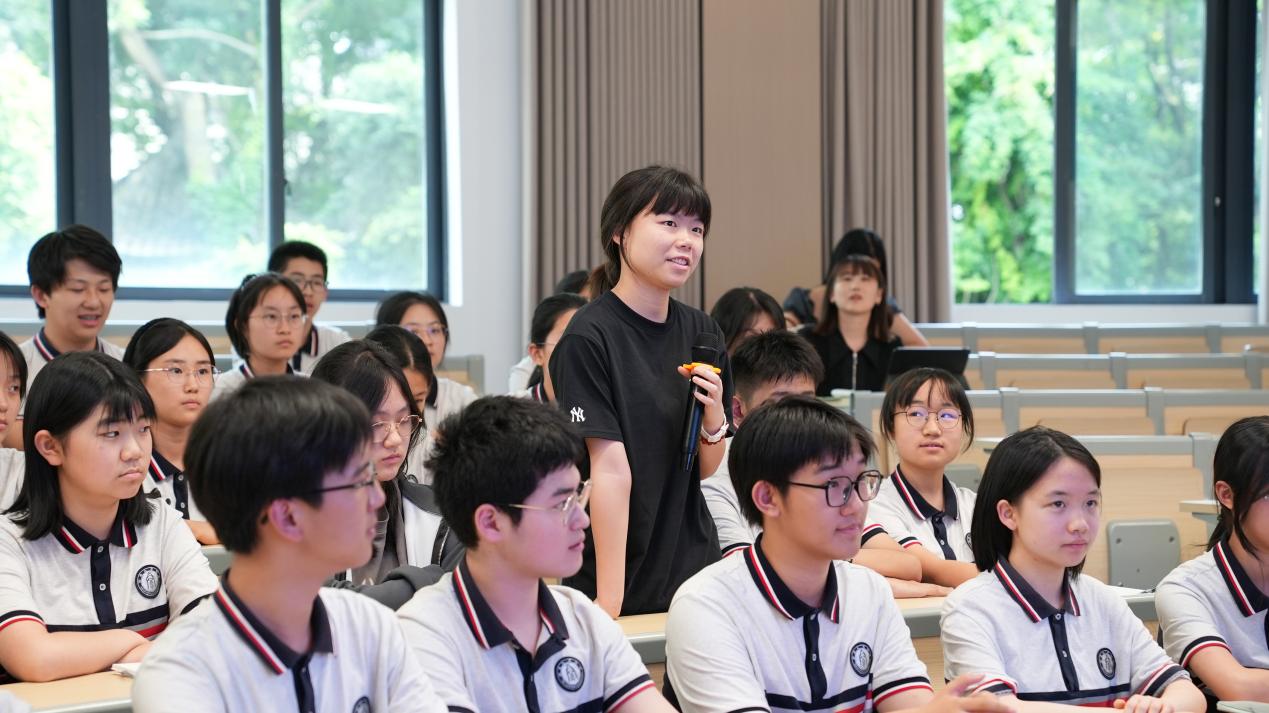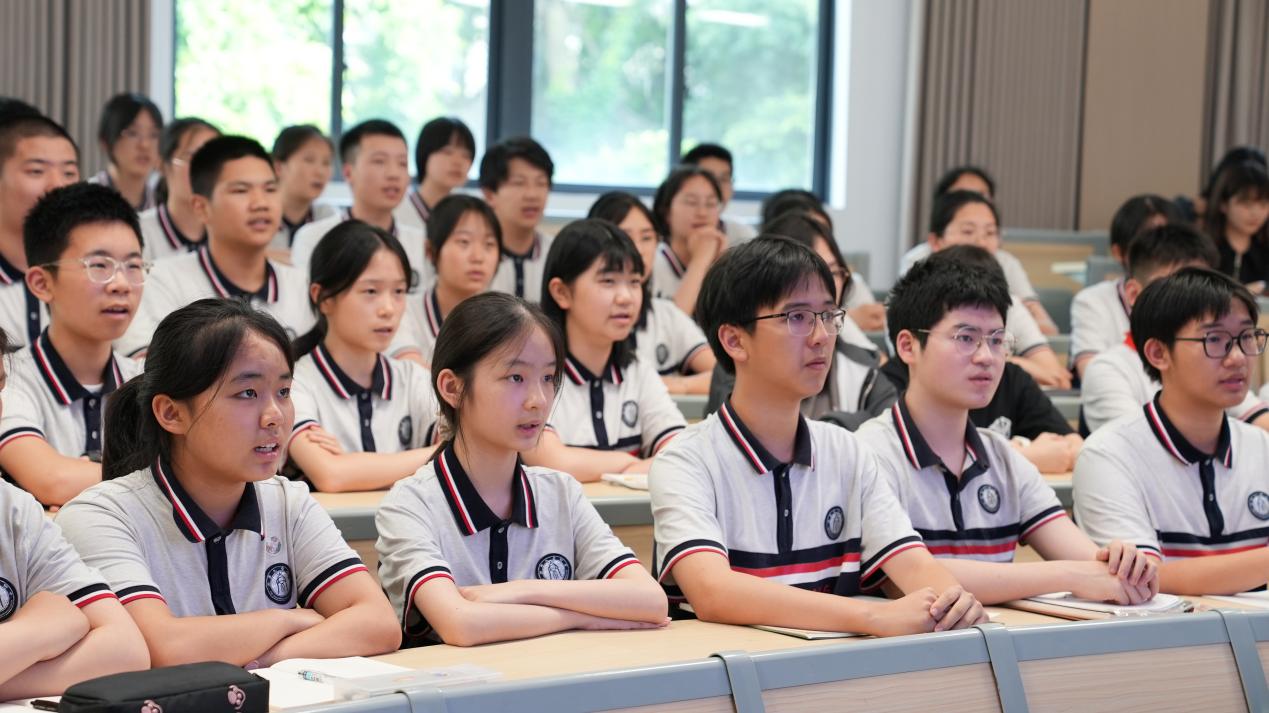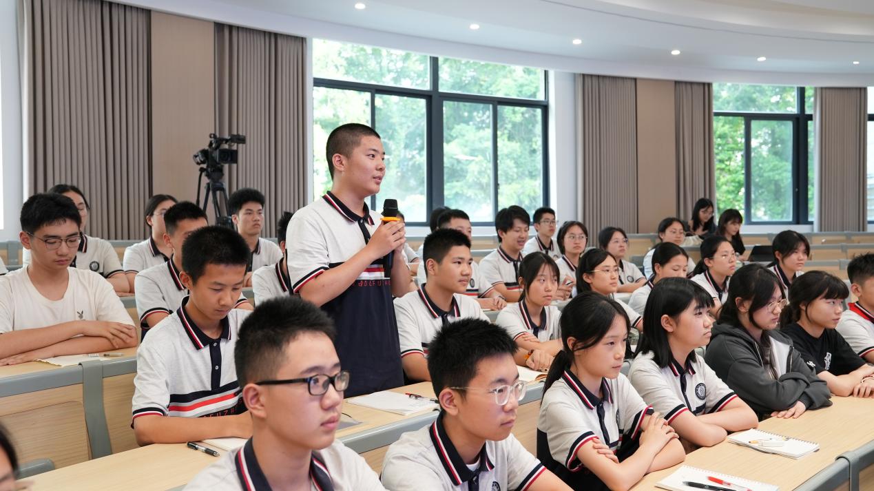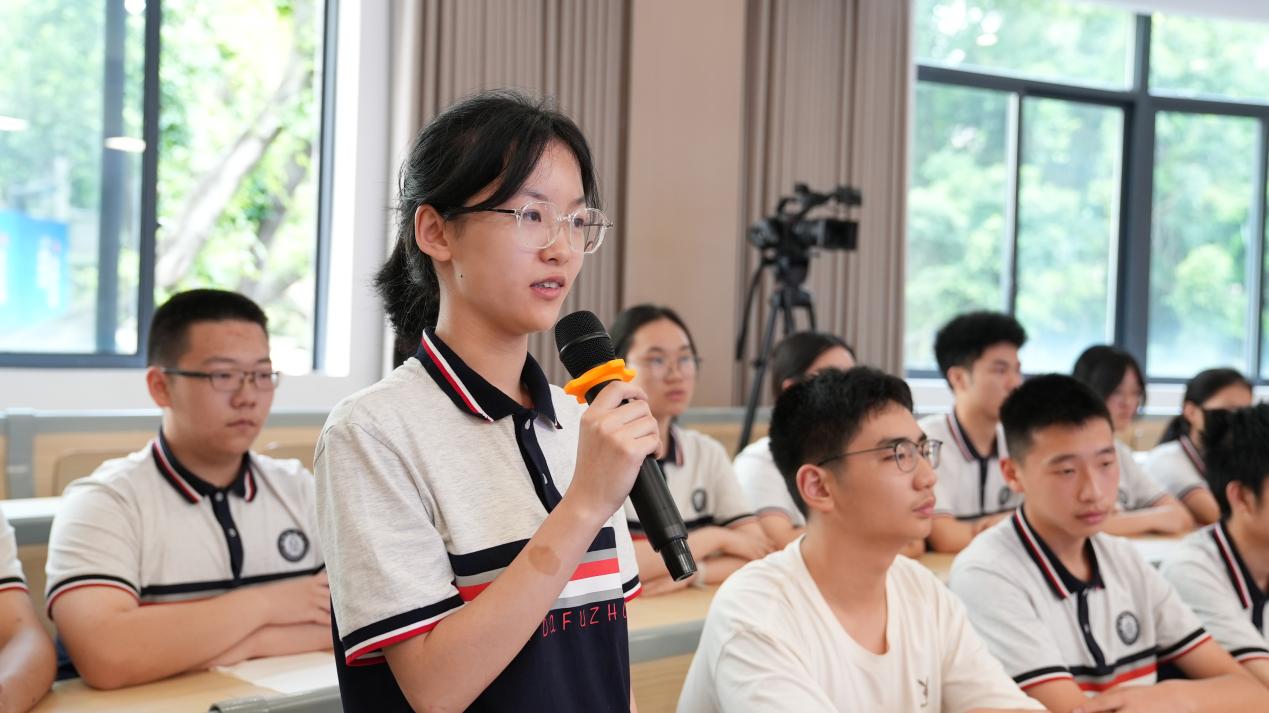 在问及未来想从事什么职业时,高二(14)班郑诗妤琪同学表示:“我想成为生物医学工程方向的预备人才,我将以解决‘卡脖子’技术难题为己任。”欧书记对此高度肯定,并强调:“青年学子要将个人发展融入国家战略,在服务国家需求中实现人生价值。”