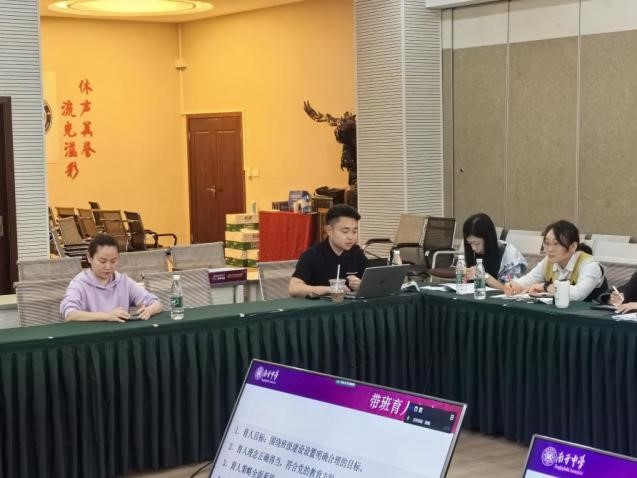 在分享阶段,刘雨霖老师对“带班育人方略”提出了自己的理解,并结合自身参加重庆市及全国班主任基本功大赛经历,围绕“带班育人方略”撰写,结合时代背景、办学背景和时代担当,从引言、班情分析、班级建设理念、班级建设目标、班级建设策略、班级建设成效等方面,为工作室成员们分享了“增能为公 化育全人”的带班育人方略。