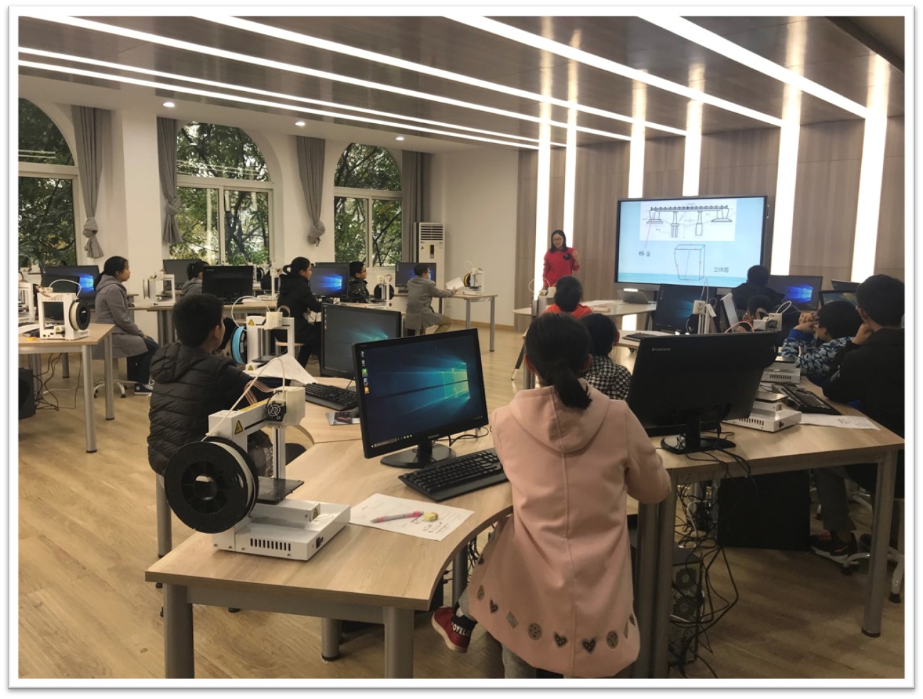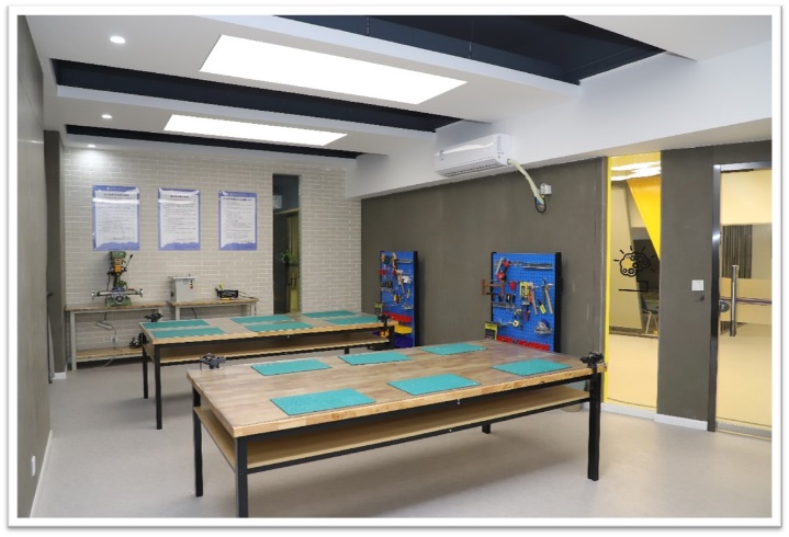 创客空间的打造包含了设计区、讨论区、展示区、加工区、机器搭建区等,在这个区域里是合,针对有特长的学生可以在里面将一个产品创意、设计、技术试验到最后物化成品的过程进行整体的深度体验。