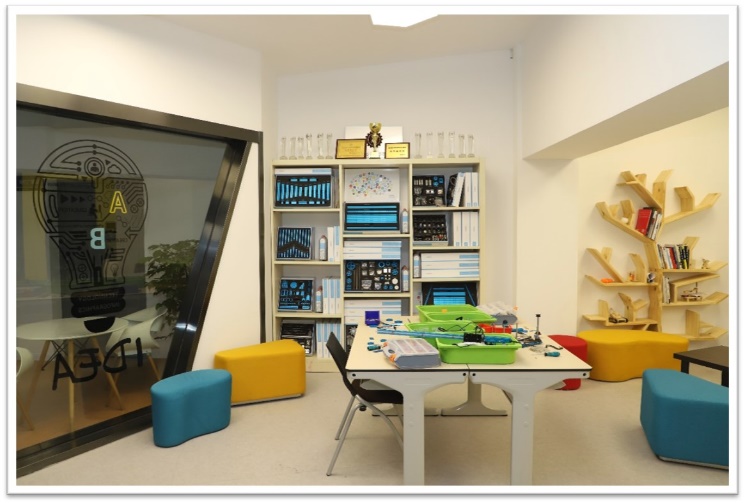 整个STEAM中心的其他实验室又是针对于每一个板块建立大班化教学的空间,比如:机器人实验室、3D打印实验室、电子工程实验室、技术设计室、技术实验室、财商实验室等等,利用通识课程和选修课程让更多的学生参与到过程中来,更大化的利用空间,更大化的开展STEAM教育。